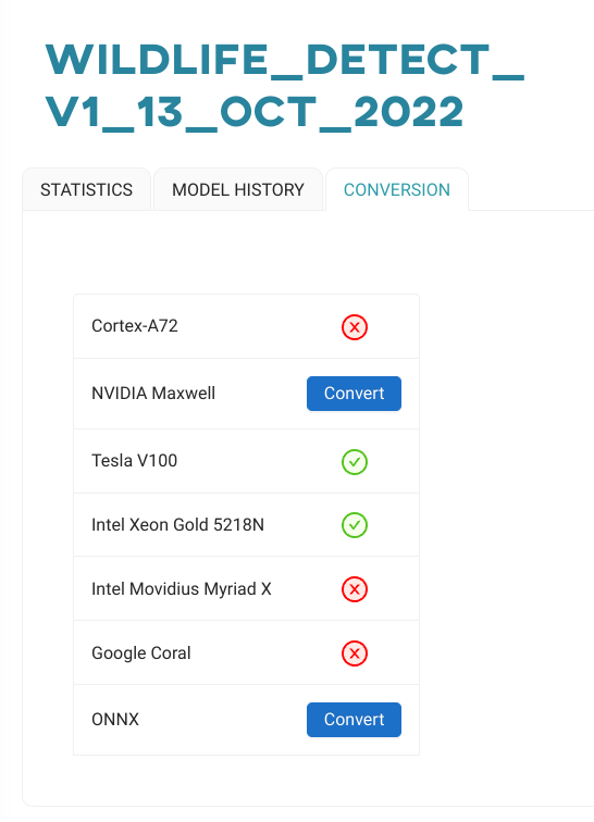 The last step at ONESTEPAI was for them to convert the trained model. I eventually selected the Google Coral EdgeTPU as a target and, again, very quickly, could download the trained model.